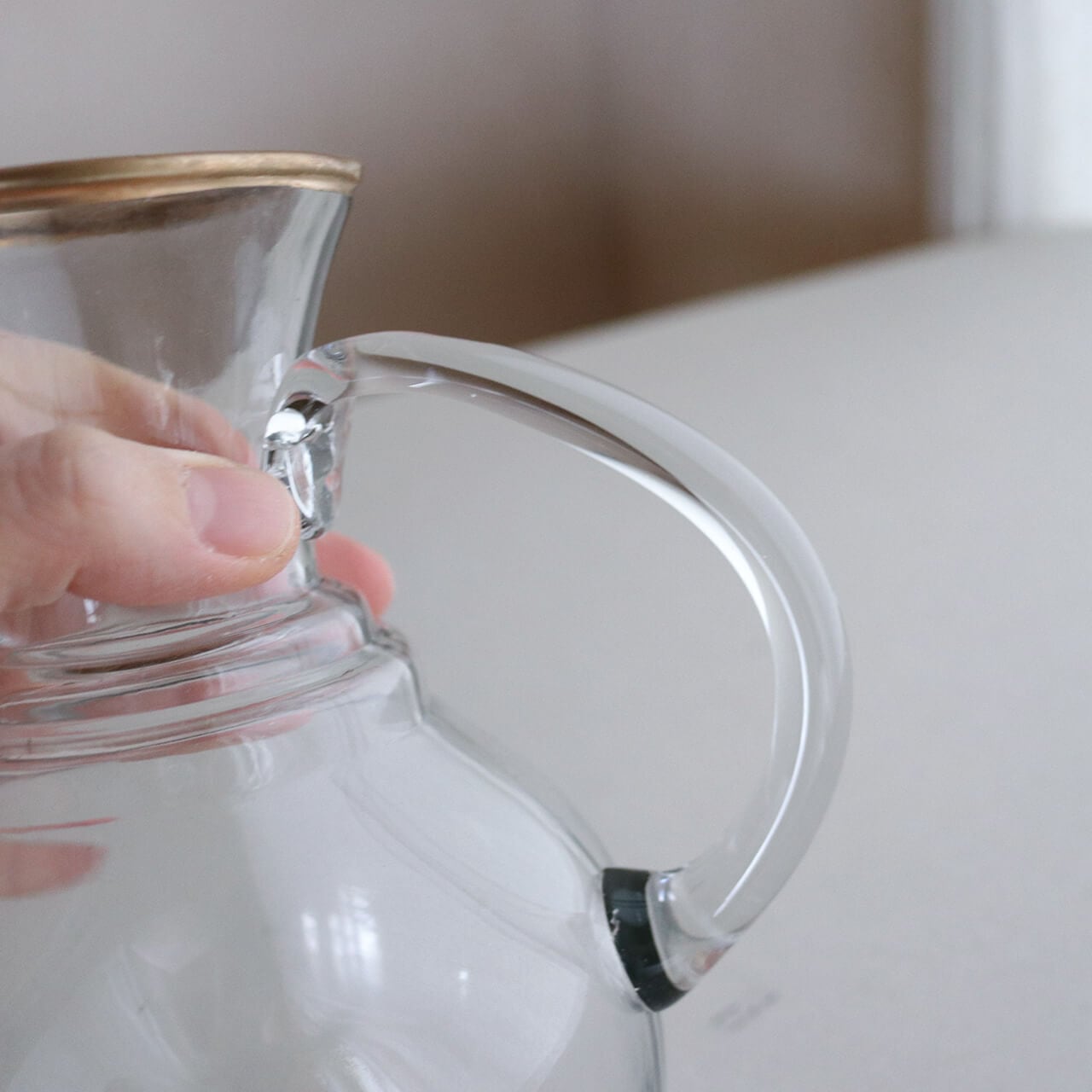 インド・フィロザバードで作られているハンドメイドの吹きガラスピッチャー。