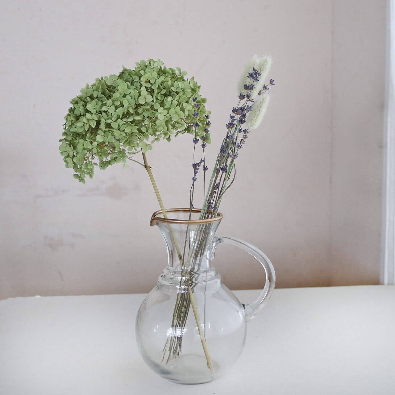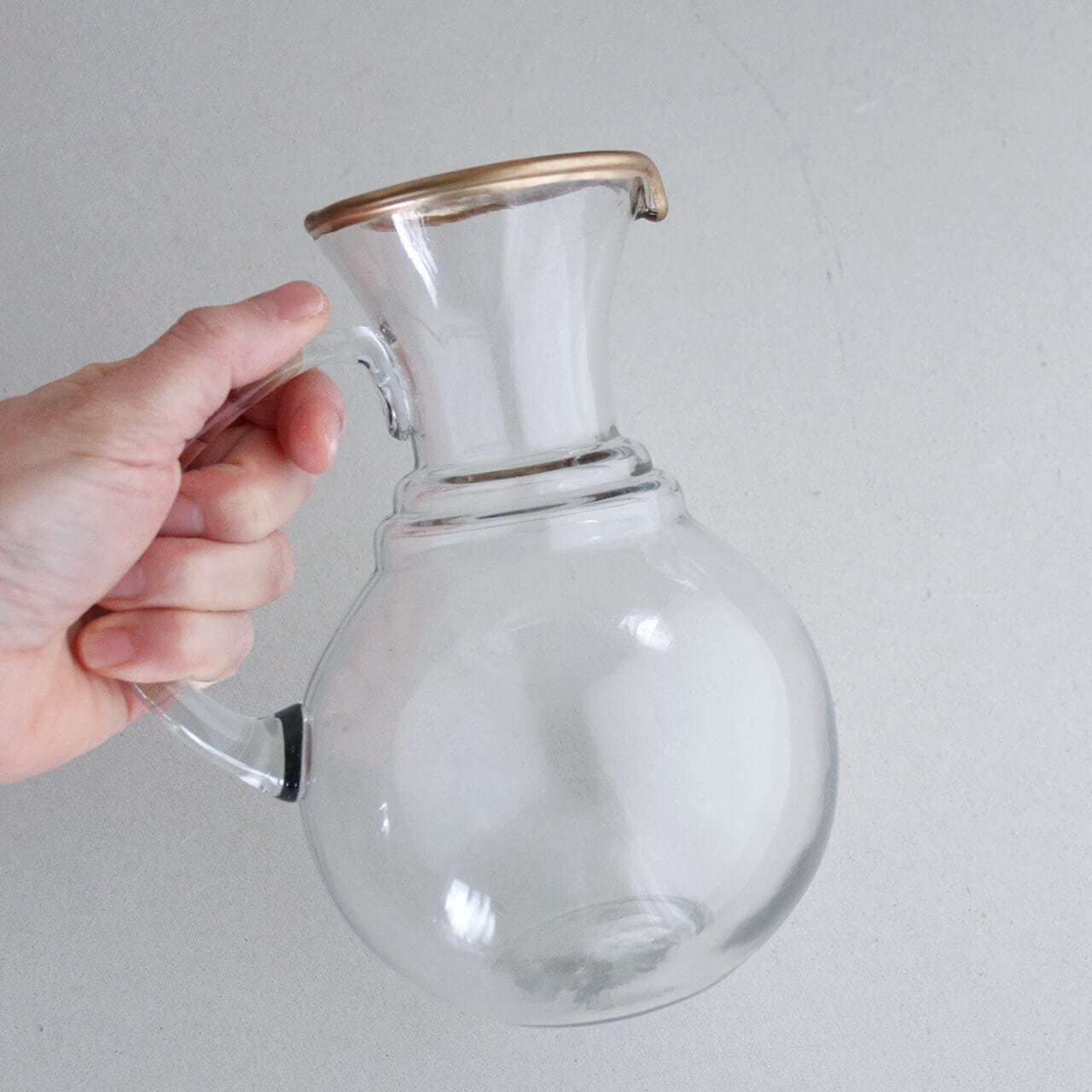 インド・フィロザバード 片手 ガラスベース ピッチャー 18.5cm * アンティーク調 ガラス 水差し おしゃれ レトロ ドライフラワー あじさい 枝付 ナチュラル 北欧 インテリア フラワーベース