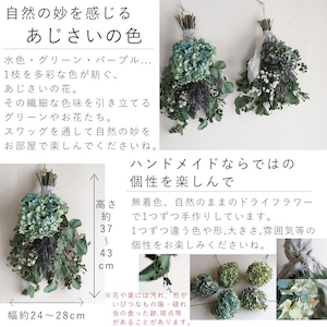 ・アジサイの色味や形によってスワッグの印象が多少変わります。自然の妙としてお楽しみください。
