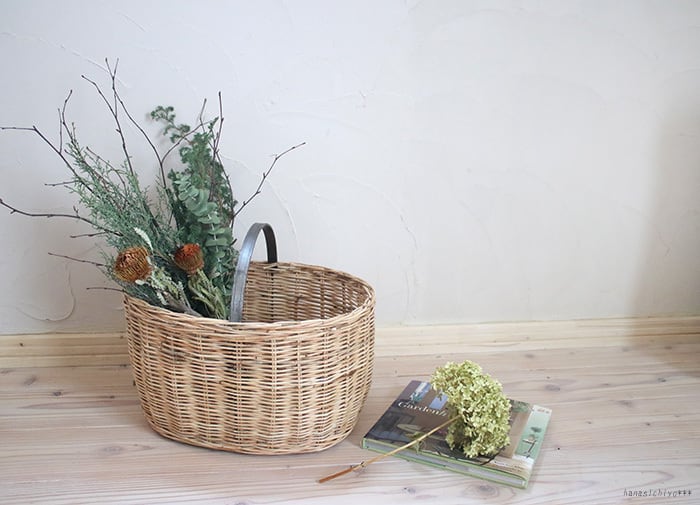 壁掛け用のひも付きなので壁にかけて飾ったり、バスケットにいれたりおいて飾ったり…