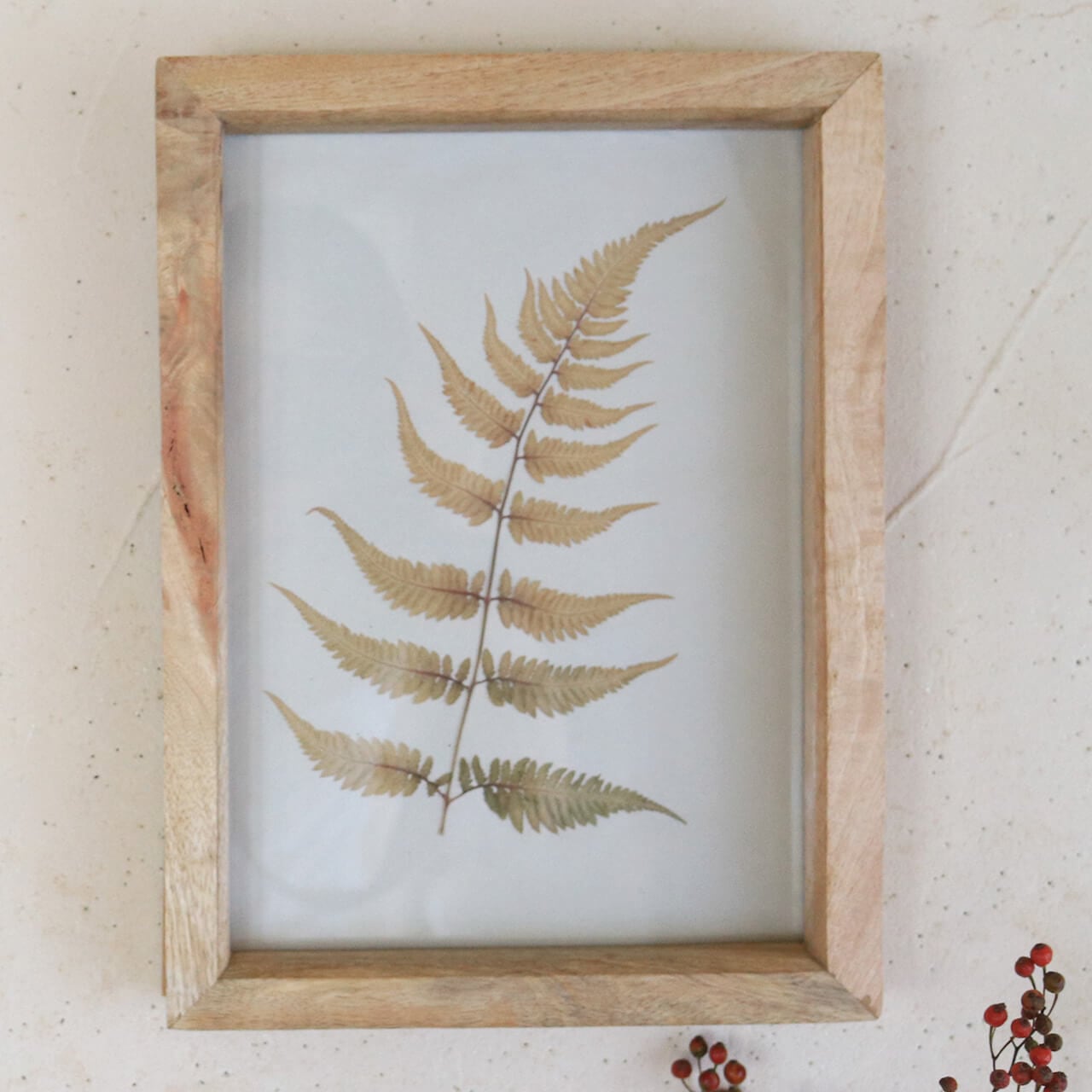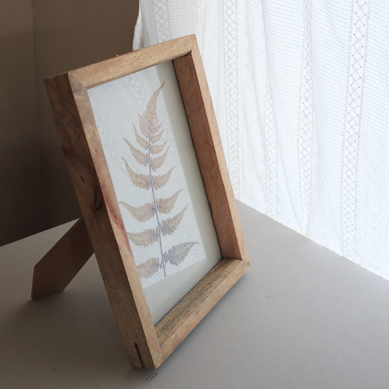 A4サイズのシンプルなフォトフレームに植物標本のようにシダをあしらいました。