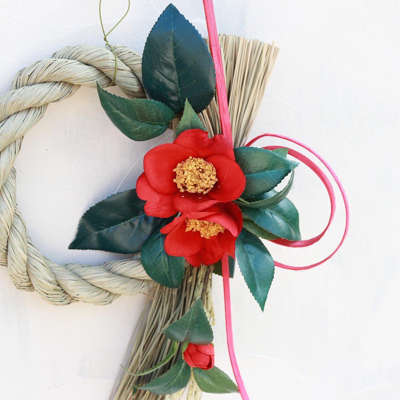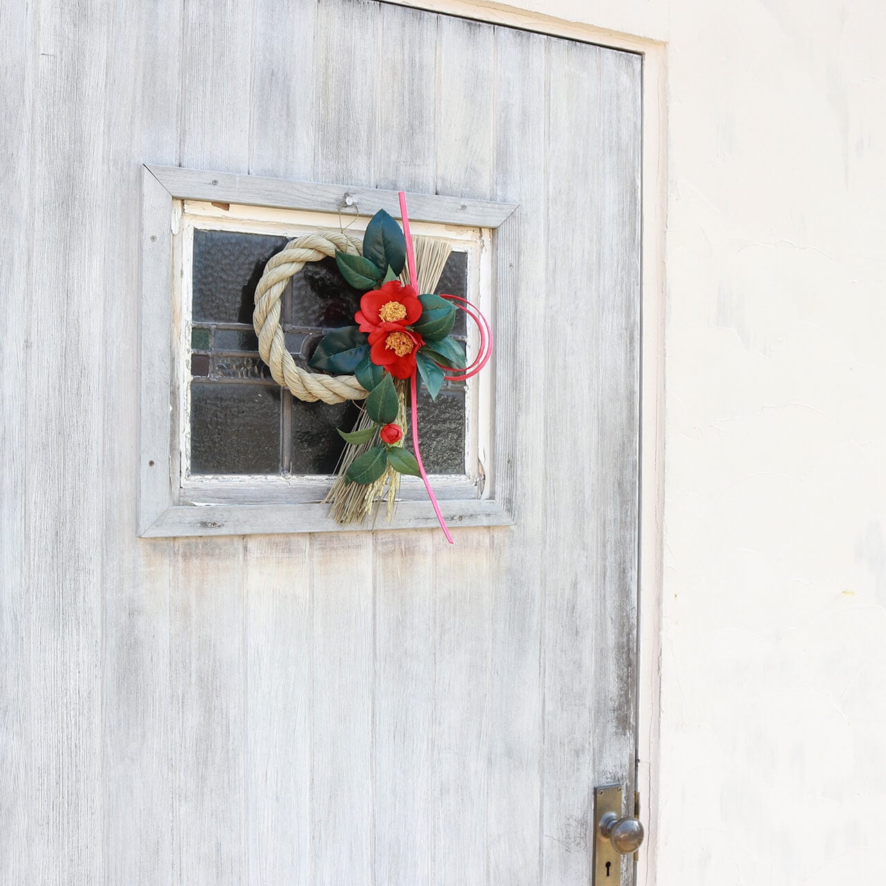 【数量限定・ 約幅27cm 】 お正月 しめ縄リース 赤椿 ◆ しめ飾り しめ縄 アーティフィシャルフラワー 正月飾り ナチュラル シンプル インテリア 大きめ 大きい おしゃれ 手作り しめ縄飾り