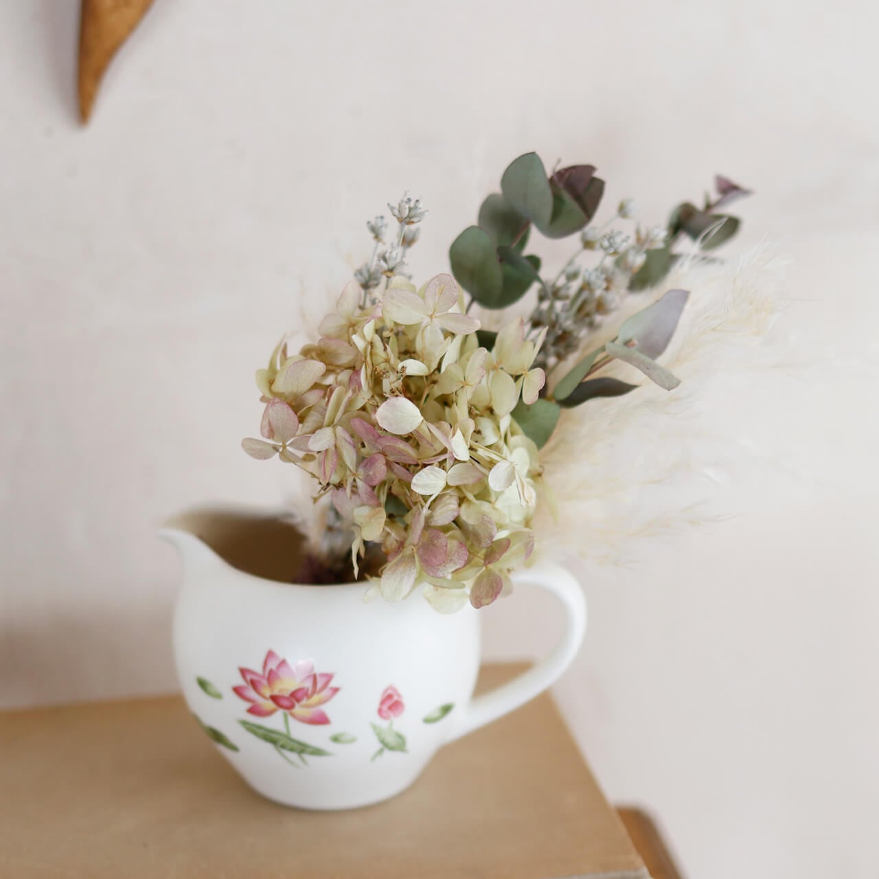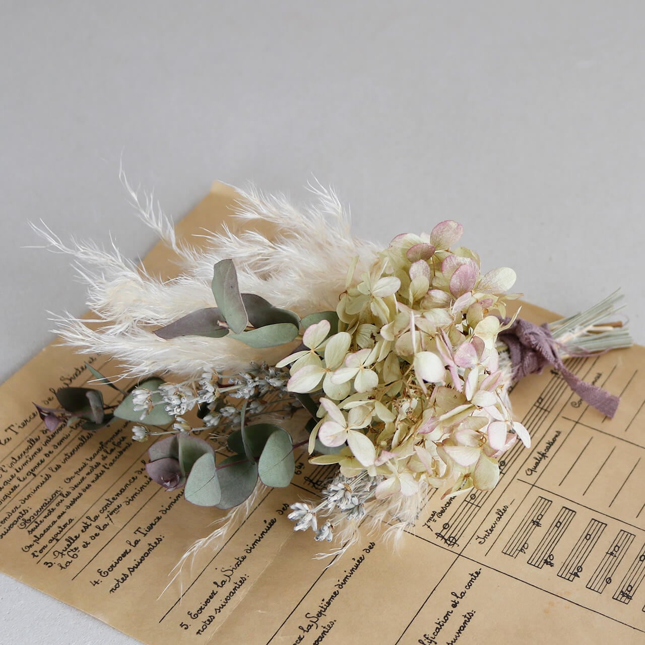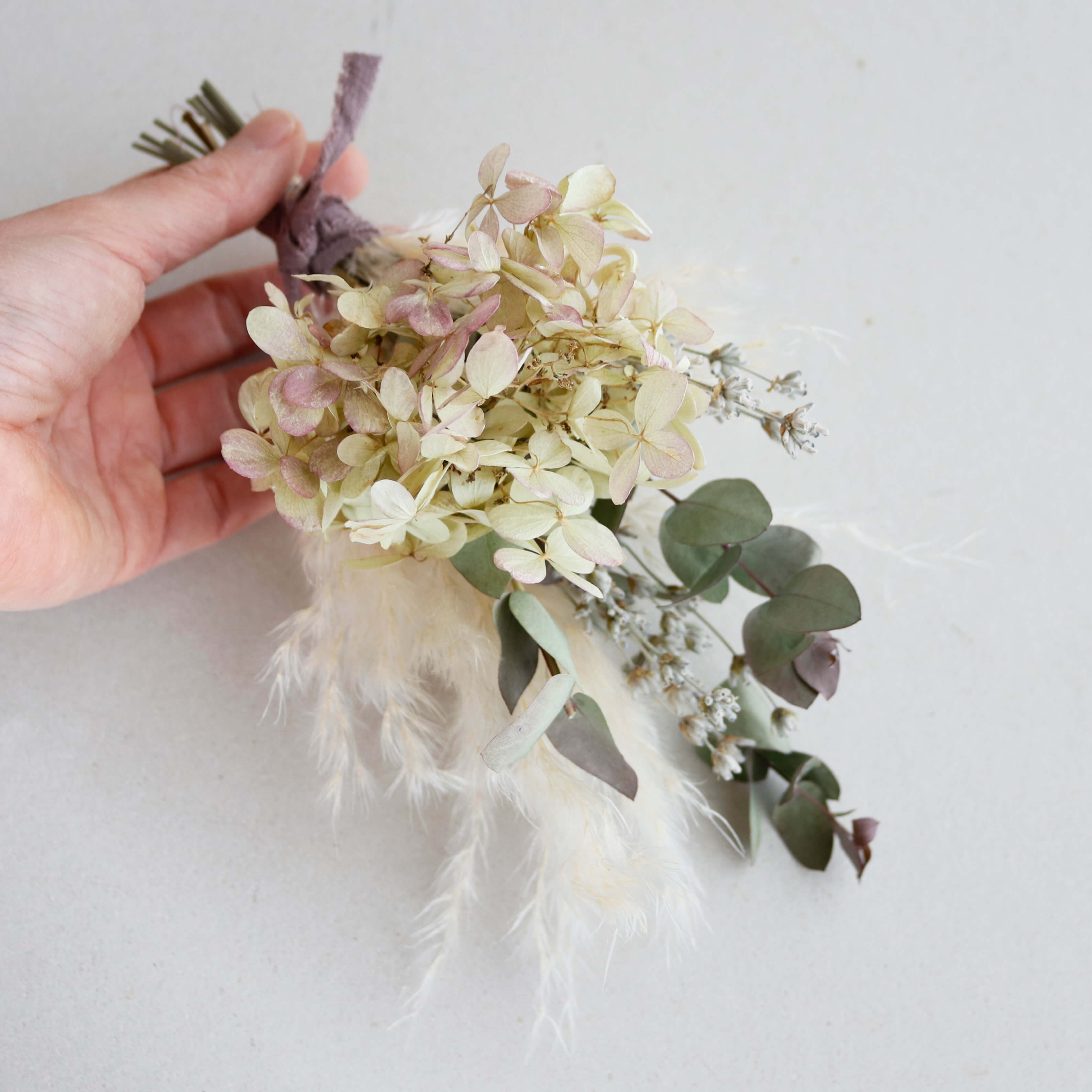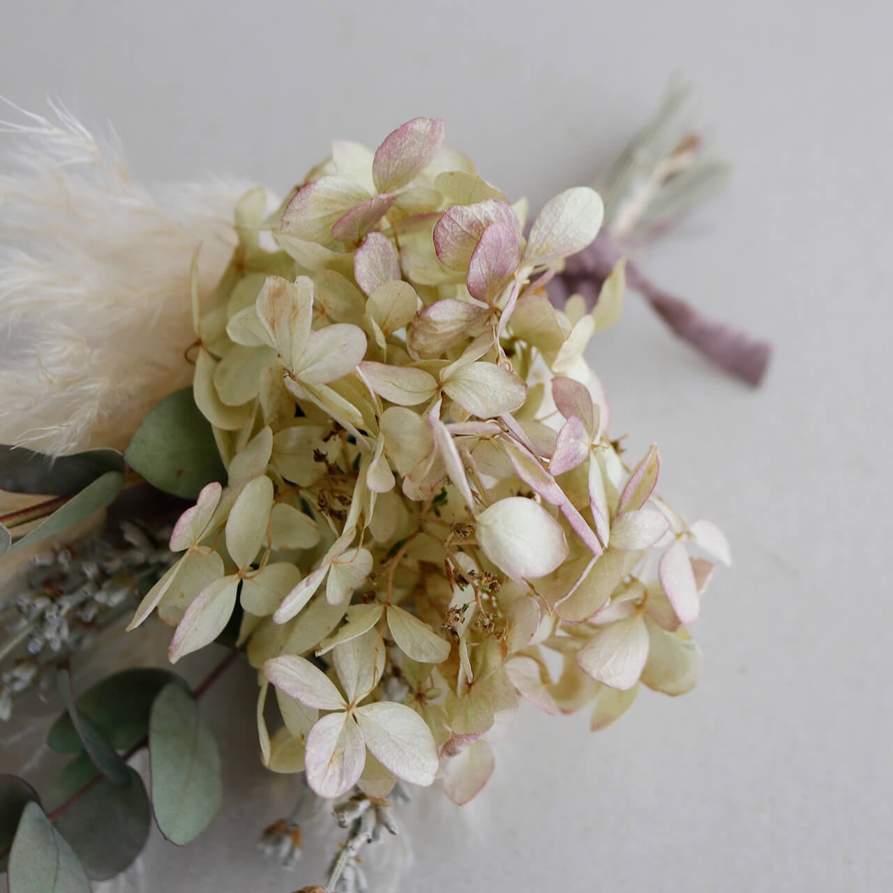 【1点もの】あじさいミナヅキとパンパスグラス ユーカリのドライフラワーミニブーケ * ドライフラワー ブーケ 花束 北欧インテリア 開店祝い 誕生日 ギフト ナチュラル かわいい ボタニカル おしゃれ 春色