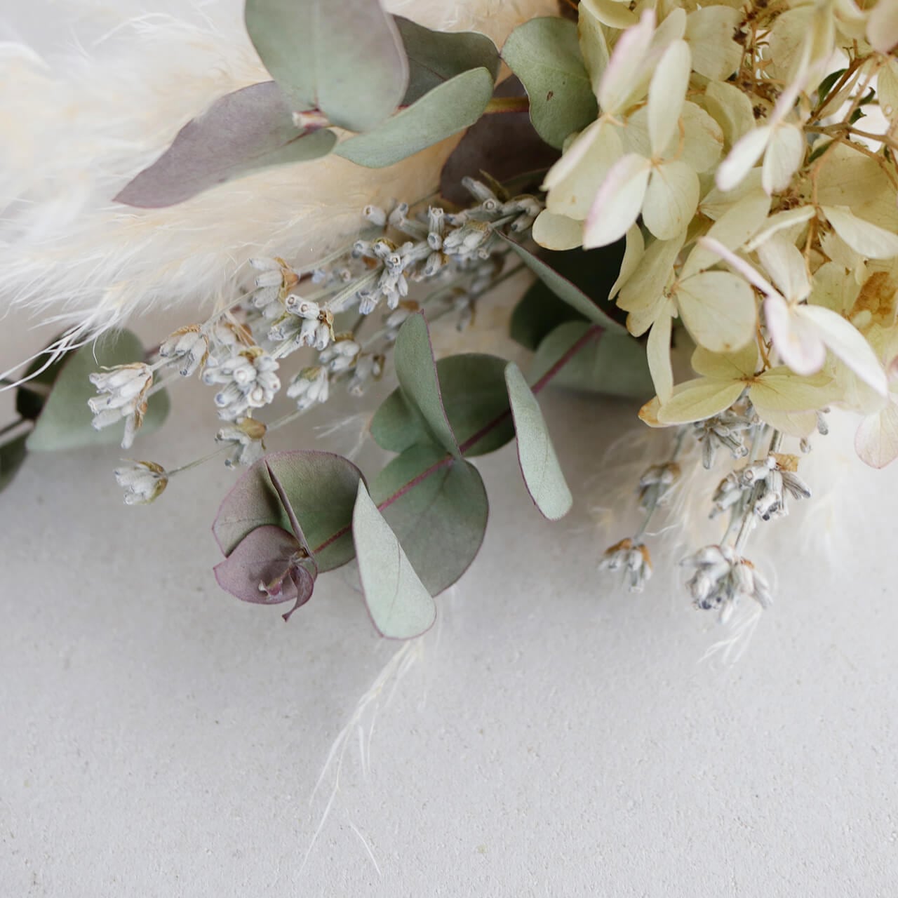 ●素材:アジサイミナヅキ・パンパスグラス・グレイッシュラベンダー・ユーカリ銀世界(ドライフラワー)